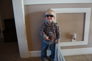 This boy is the cutest thing to ever walk the planet!! He has SUCH a fun little personality and is so sweet!! Q had put a bandaid on an owee she had gotten and T wanted one too so I put one on his frohead and he wouldn't let me take it off...pretty sure it was there for 2 days straight =) He found his sunglasses and was oh so excited to wear them!! Love him!